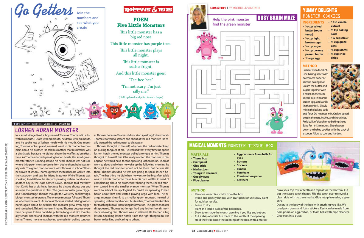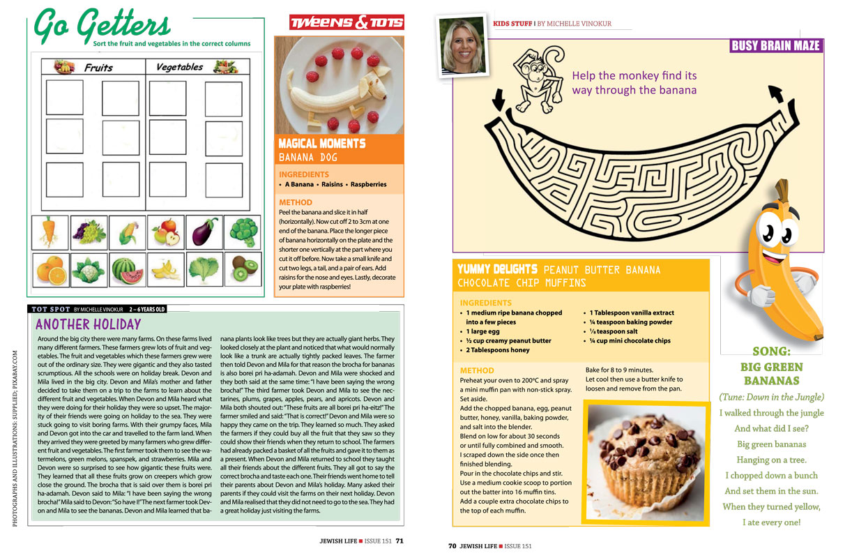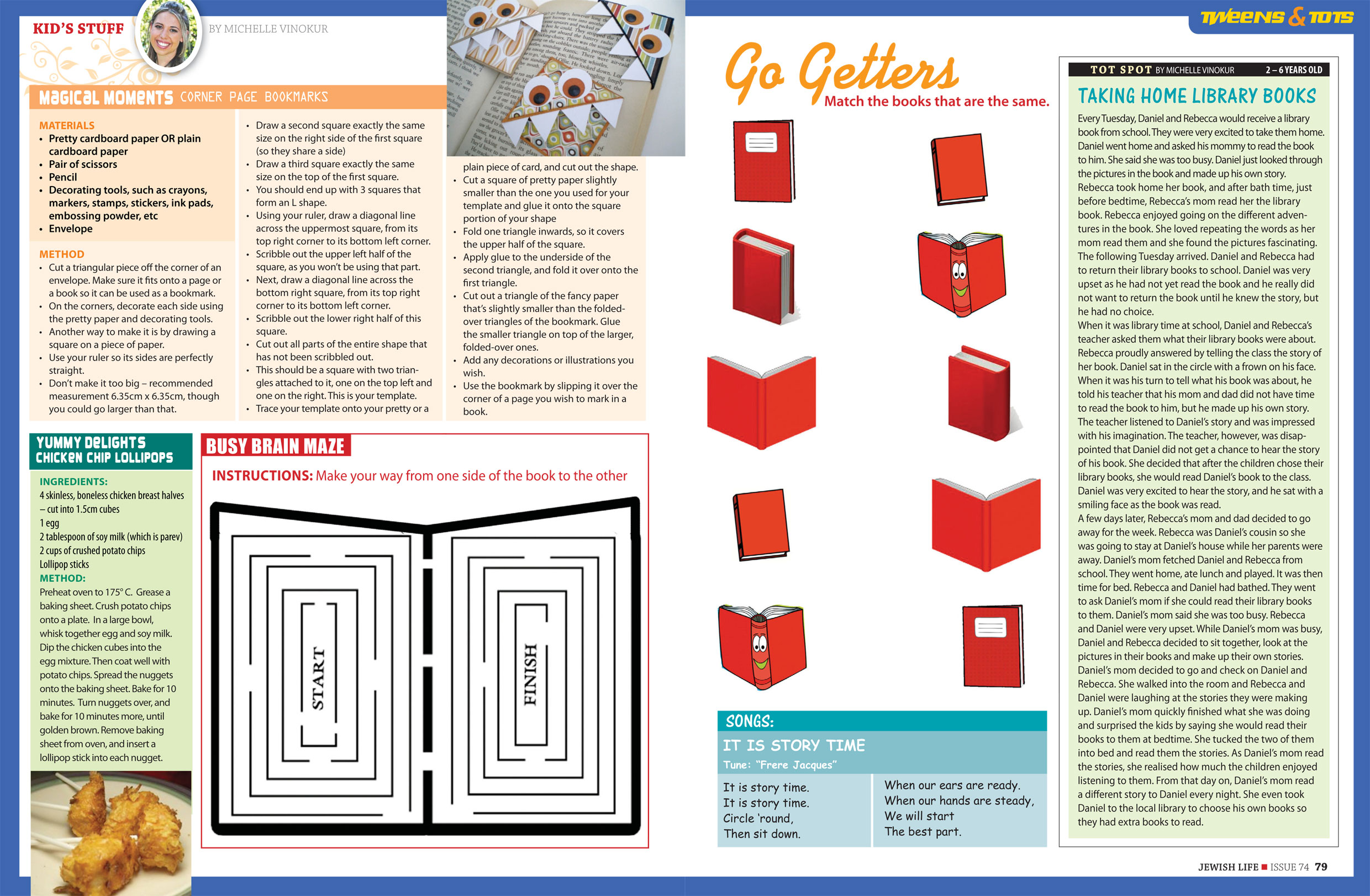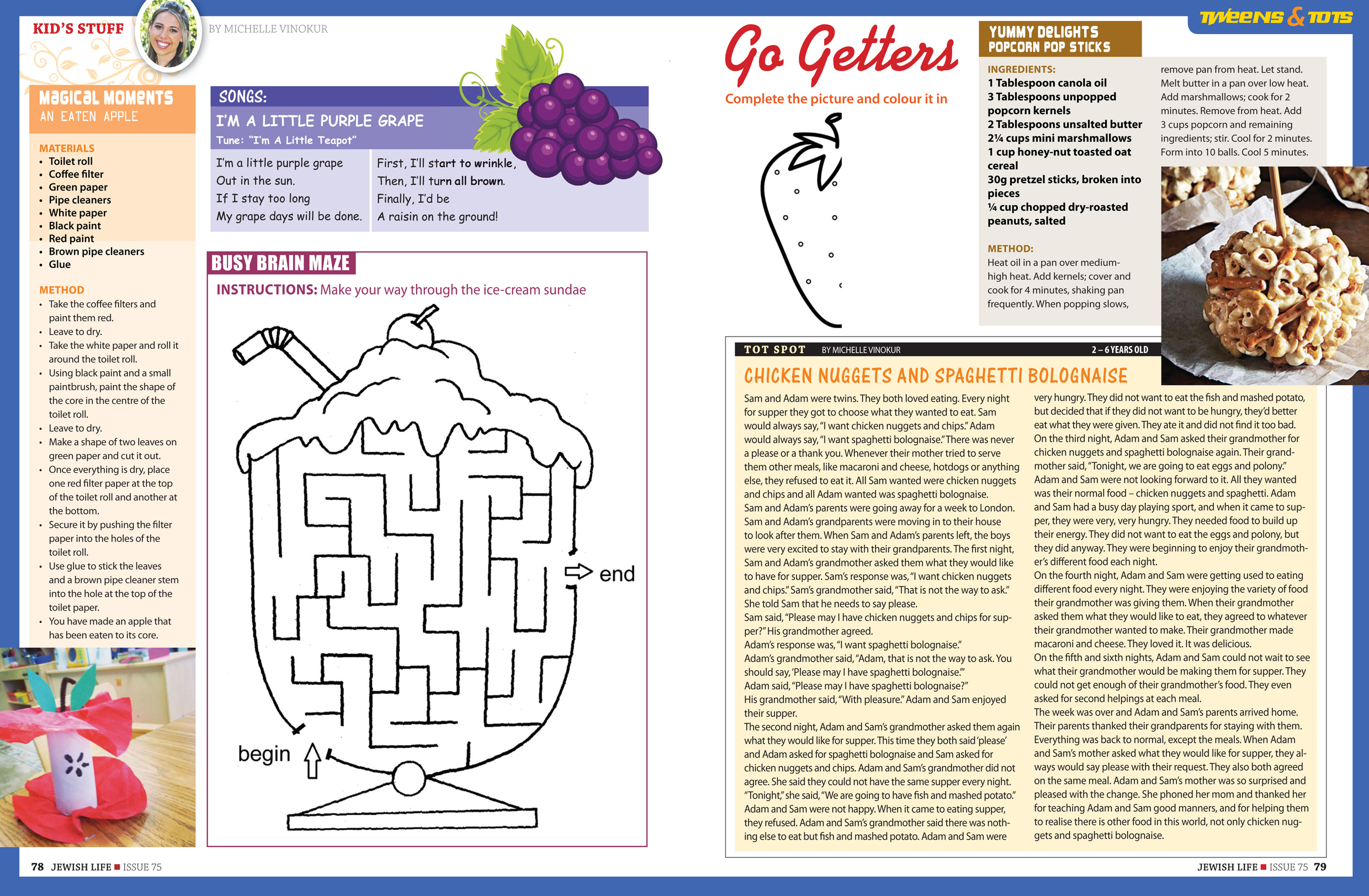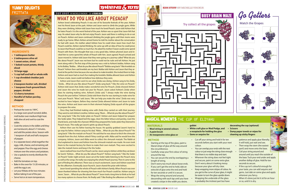 The Jewish Life is the highest circulating publication to the SA Jewish community. The magazine is filled with the best local and International content that conveys the essence of Jewish life. Readers can engage in numerous articles about lifestyle, parenting, business, belief, philosophy, history, health, community. Included in the magazine is a section dedicated to children's education. The children's section provides games, stories, recipes and fun activities that impart jewish values and beliefs. View all the children's pages below and have fun doing all the activities with your children; or you can buy the magazine. The magazine is also available nationwide in South Africa in all shuls, Jewish day schools, selected retail outlets, as well as on all El Al flights from Johannesburg to Israel (business and economy Class).